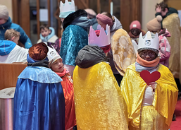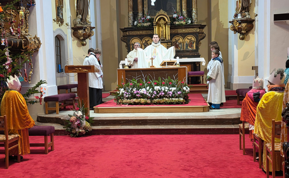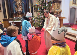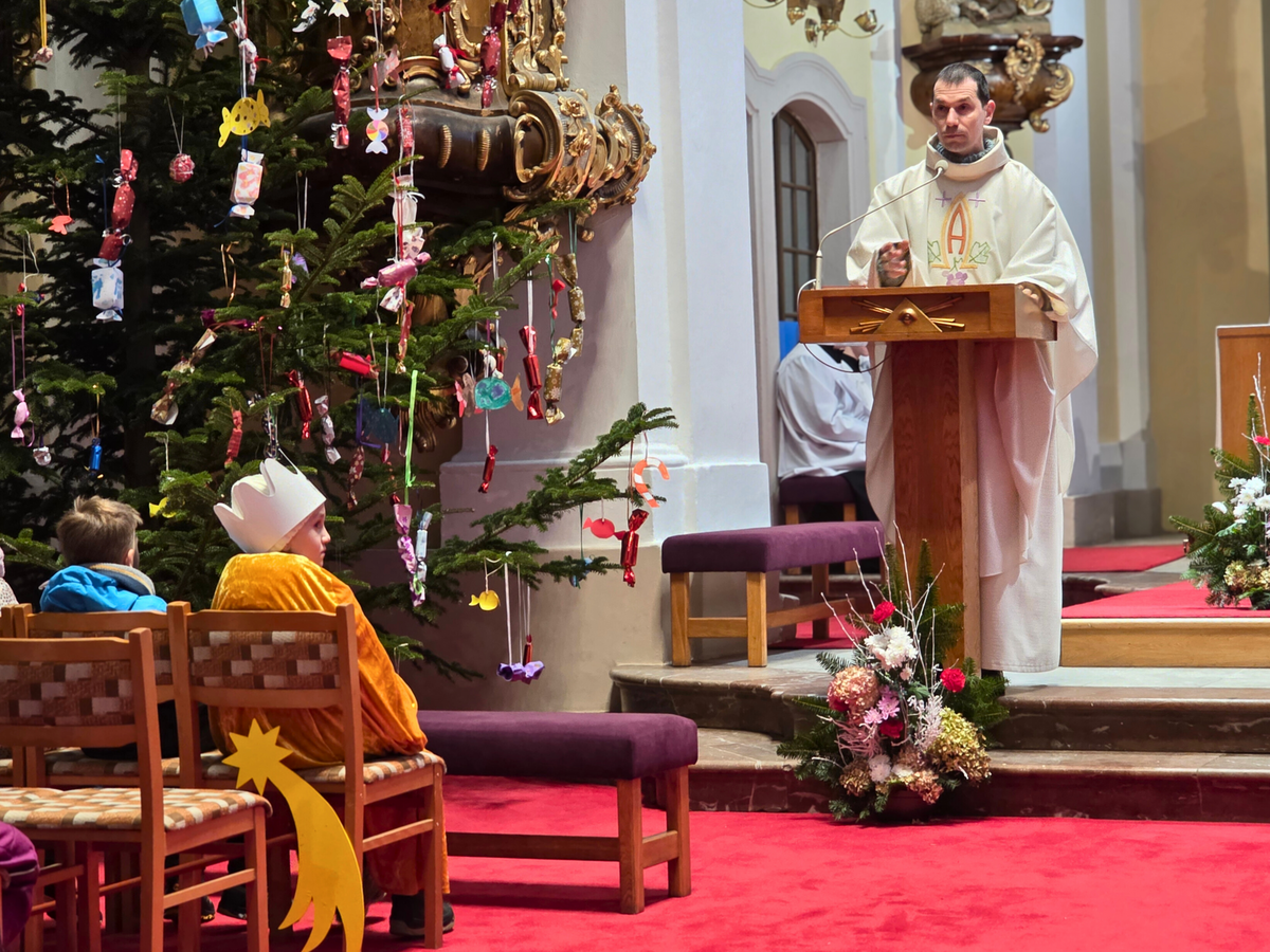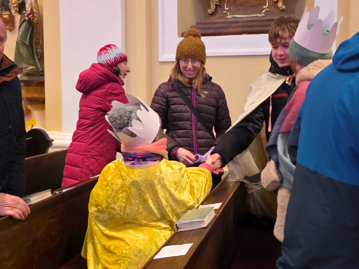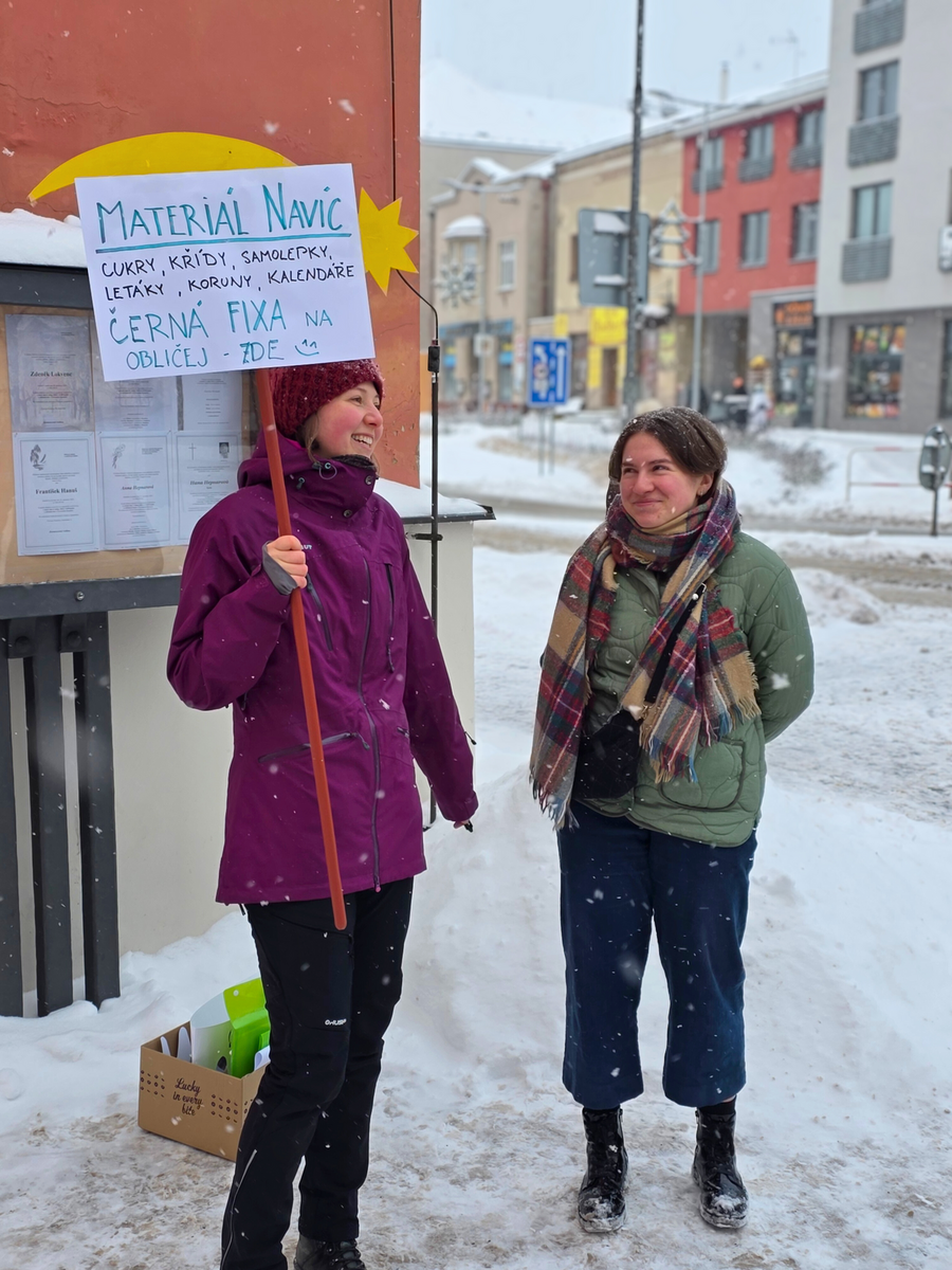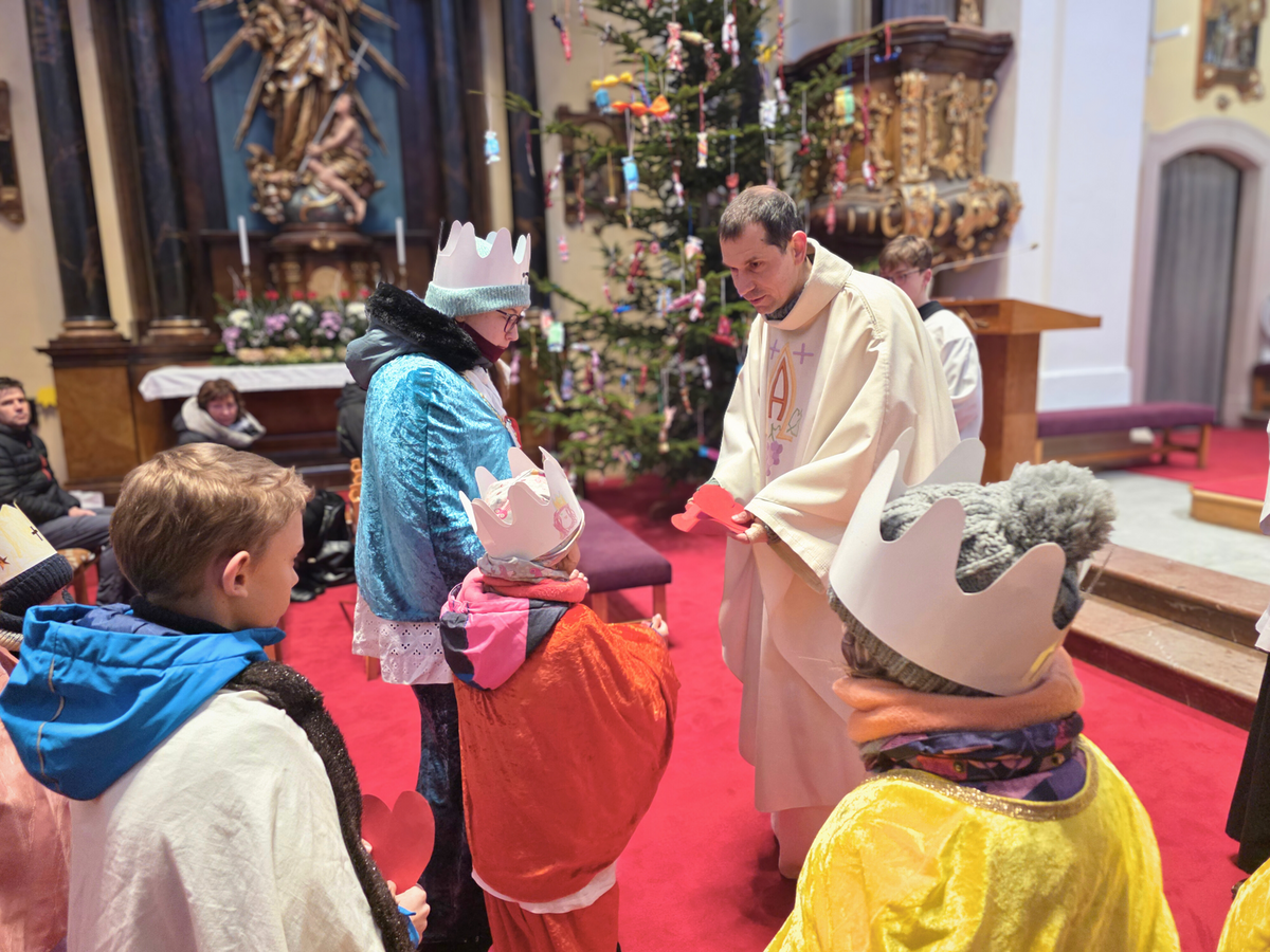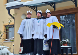 Letos mělo zahájení sbírky u nás výjimečně kouzelnou atmosféru. Po tříkrálové mši svaté nás při odchodu z kostela obklopilo jemné sněžení, které se tiše snášelo do ulic. Zanedlouho už byly vidět další přípravy – malování na obličej, děti s papírovými korunami v kočárcích, skupinky koledníků, které se formovaly před kostelem na společnou fotku.